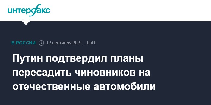 Москва. 12 сентября. INTERFAX.RU - Вопрос о том, чтобы российские чиновники перешли на отечественные автомобили, сейчас стоит на повестке дня, скоро начнутся госзакупки, заявил президент РФ Владимир Путин.