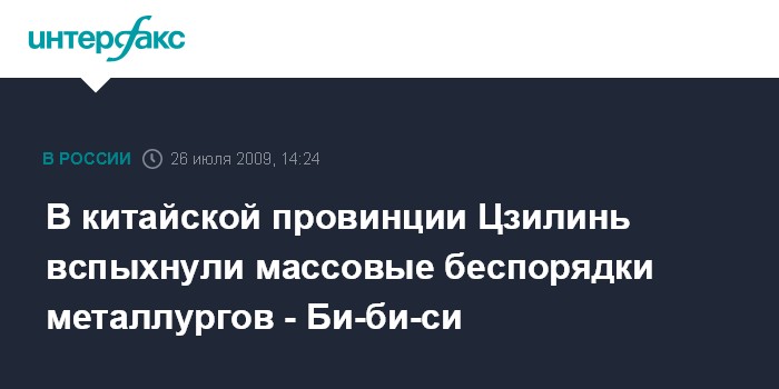 Со ссылкой на Информационный центр за права человека и демократию Би-би-си сообщает, что всего в беспорядках и в стычках с полицией в северо-восточной провинции Цзилинь в минувшую пятницу приняли участие 30 тыс. рабочих.