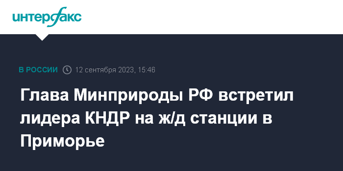 Москва. 12 сентября. INTERFAX.RU - Лидера КНДР Ким Чен Ына во вторник утром на железнодорожной станции Хасан в Приморском крае встречал глава Минприроды РФ Александр Козлов.