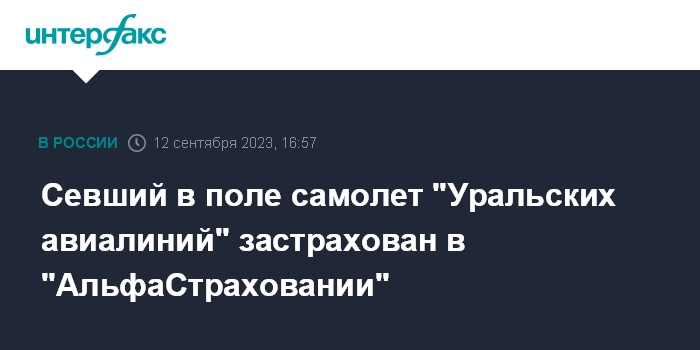 Севший в поле самолет "Уральских авиалиний" застрахован в "АльфаСтраховании"