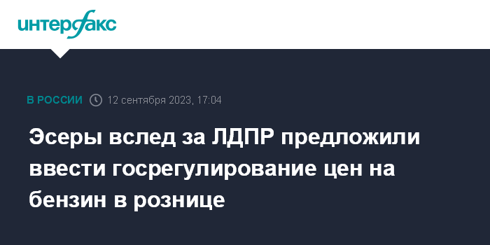 Москва. 12 сентября. INTERFAX.RU - Группа депутатов от фракции "Справедливая Россия" вслед за депутатами от фракции ЛДПР внесла в Госдуму законопроект, который наделяет правительство РФ правом устанавливать предельно допустимые розничные цены на бензин и дизельное топливо. Эсеры предложили добавить к этому перечню еще и бензол, параксилол, ортоксилол, авиационный керосин, средние дистилляты.