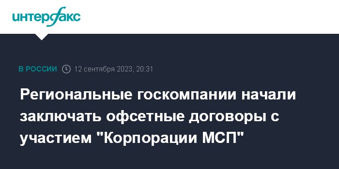Москва. 12 сентября. INTERFAX.RU - Региональные госкомпании начали использовать при участии "Корпорации МСП" механизм офсетных договоров (со встречными инвестиционными обязательствами).