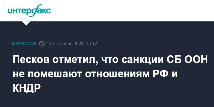 Москва. 12 сентября. INTERFAX.RU - Россия сохраняет свою позицию в отношении санкций СБ ООН в отношении КНДР, но это не должно мешать развитию отношений между двумя странами, заявил пресс-секретарь президента РФ Дмитрий Песков.
