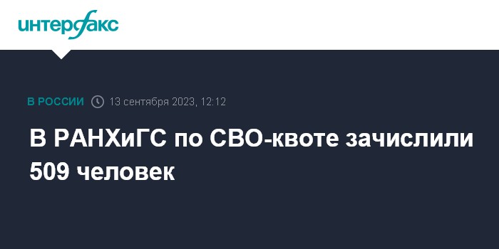 В РАНХиГС по СВО-квоте зачислили 509 человек