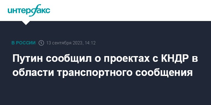 Москва. 13 сентября. INTERFAX.RU - Президент РФ Владимир Путин заявил, что у России и КНДР есть много интересных проектов в области транспорта, на переговорах с лидером КНДР обсуждали и вопросы развития сельского хозяйства.