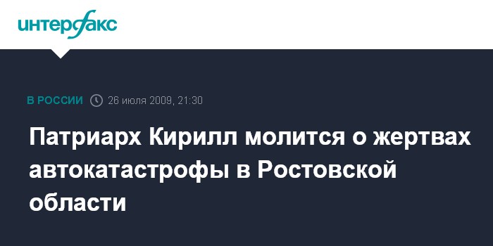 Москва. 26 июля. ИНТЕРФАКС - Патриарх Московский и всея Руси Кирилл выразил соболезнования в связи с трагической гибелью людей в автокатастрофе в Ростовской области.