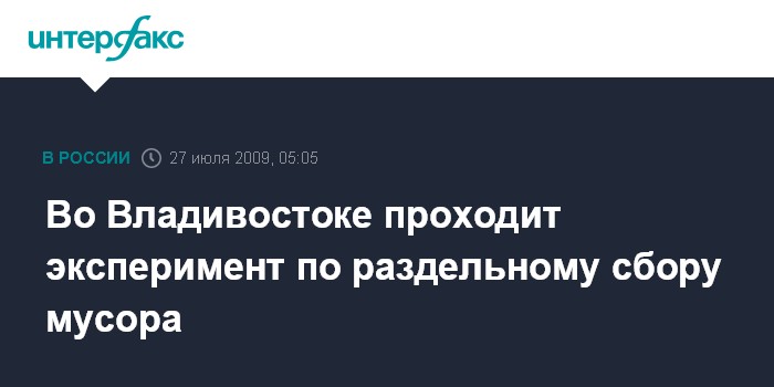 Владивосток. 27 июля. ИНТЕРФАКС-ДАЛЬНИЙ ВОСТОК - Первый этап эксперимента по раздельному сбору мусора во Владивостоке признан успешным. В специальные контейнеры было собрано более одной тонны пластиковых бутылок.