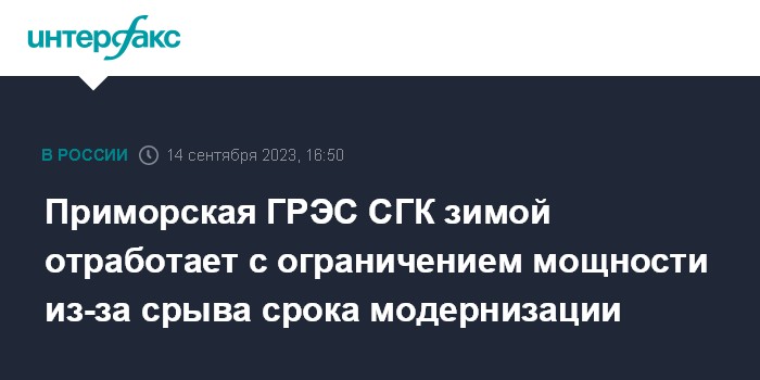 Приморская ГРЭС СГК зимой отработает с ограничением мощности из-за срыва срока модернизации
