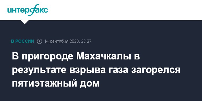 Москва. 14 сентября. INTERFAX.RU - Бытовой газ взорвался в пятиэтажном доме в Махачкале, сообщили "Интерфаксу" в экстренных службах.