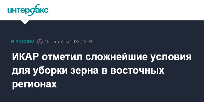 ИКАР отметил сложнейшие условия для уборки зерна в восточных регионах