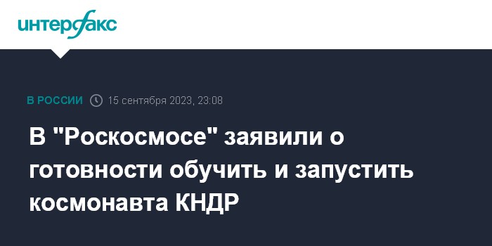 Москва. 15 сентября. INTERFAX.RU - Россия готова подготовить и запустить северокорейского космонавта, но детали сотрудничества не обсуждались, сообщил гендиректор "Роскосмоса" Юрий Борисов.