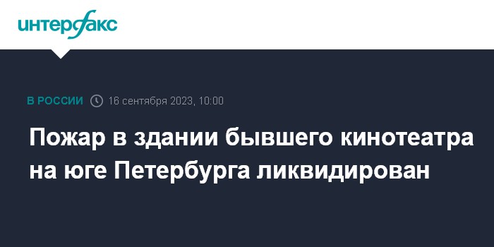 Москва. 16 сентября. INTERFAX.RU - Пожарные потушили трехэтажное здание бывшего советского кинотеатра "Слава" на юге Петербурга, сообщается в телеграм-канале регионального управления МЧС в субботу.