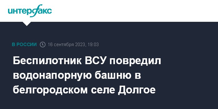 Беспилотник ВСУ повредил водонапорную башню в белгородском селе Долгое
