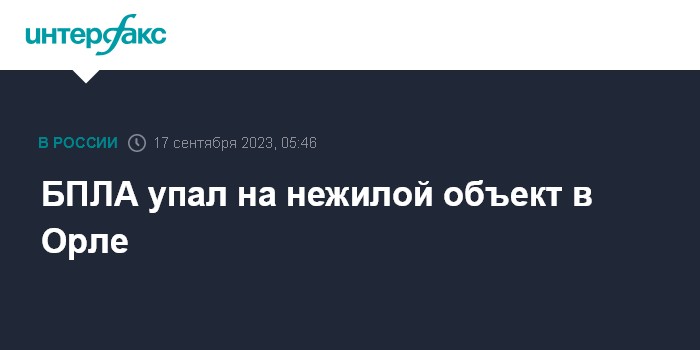 Москва. 17 сентября. INTERFAX.RU - Губернатор Орловской области Андрей Клычков сообщил о падении в Орле беспилотника, по предварительным данным, пострадавших нет.
