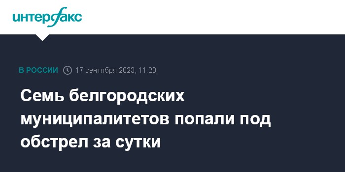 Москва. 17 сентября. INTERFAX.RU - Губернатор Белгородской области Вячеслав Гладков сообщил об ударах, нанесенных с украинской стороны за минувшие сутки.