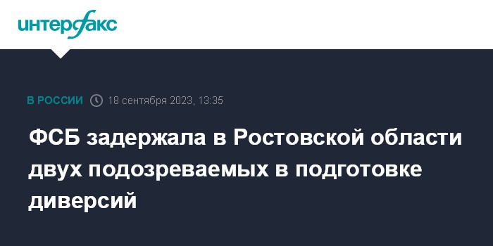 ФСБ задержала в Ростовской области двух подозреваемых в подготовке диверсий