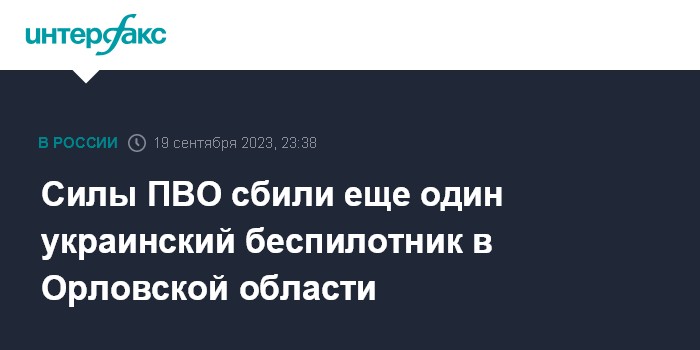Силы ПВО сбили еще один украинский беспилотник в Орловской области
