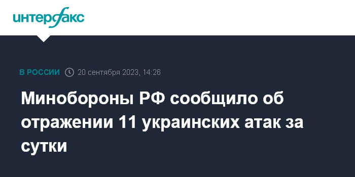 Минобороны РФ сообщило об отражении 11 украинских атак за сутки