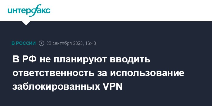 Москва. 20 сентября. INTERFAX.RU - Введение ответственности за использование VPN-сервисов, которые в настоящее время заблокированы в России за неисполнение требования законодательства, не планируется, сообщил министр цифрового развития, связи и массовых коммуникаций Максут Шадаев.