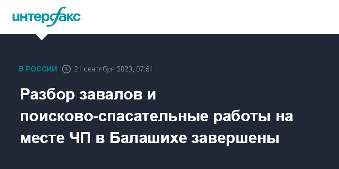 Разбор завалов и поисково-спасательные работы на месте ЧП в Балашихе завершены