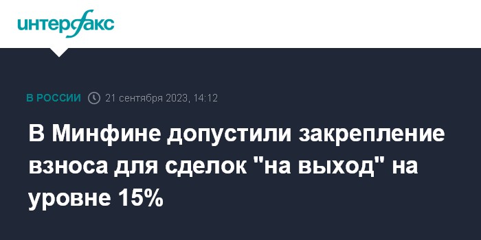 В Минфине допустили закрепление взноса для сделок "на выход" на уровне 15%