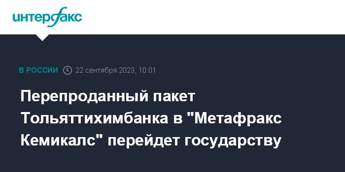 Перепроданный пакет Тольяттихимбанка в "Метафракс Кемикалс" перейдет государству