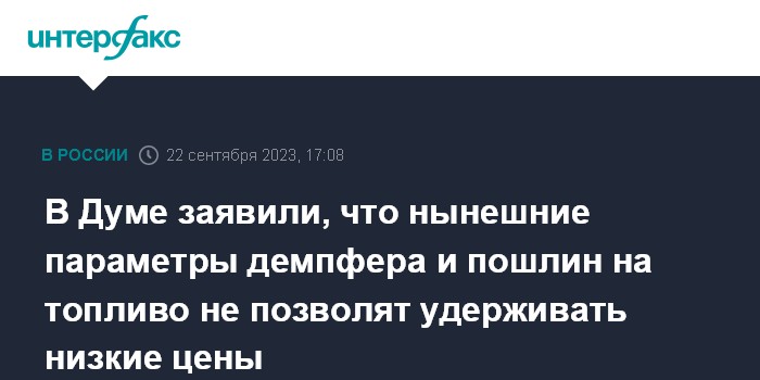 В Думе заявили, что нынешние параметры демпфера и пошлин на топливо не позволят удерживать низкие цены