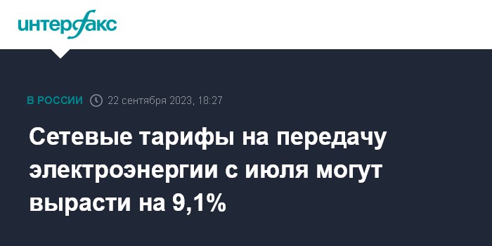 Сетевые тарифы на передачу электроэнергии с июля могут вырасти на 9,1%