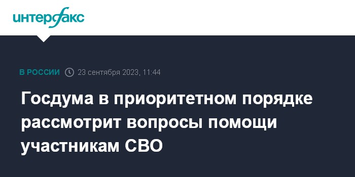 Госдума в приоритетном порядке рассмотрит вопросы помощи участникам СВО
