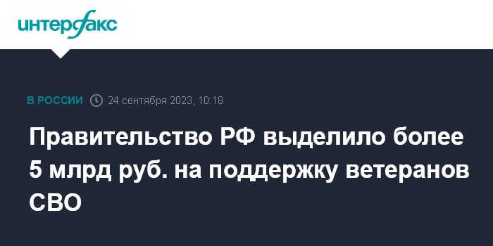 Правительство РФ выделило более 5 млрд руб. на поддержку ветеранов СВО