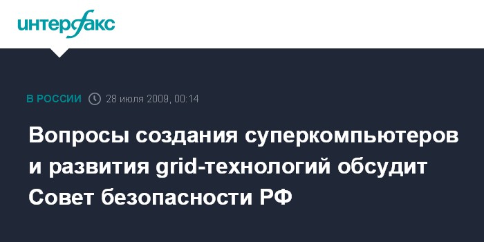 Вопросы создания суперкомпьютеров и развития grid-технологий обсудит Совет безопасности РФ