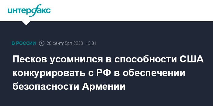 Песков усомнился в способности США конкурировать с РФ в обеспечении безопасности Армении