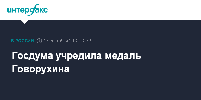 Москва. 26 сентября. INTERFAX.RU - Госдума приняла постановление об учреждении медали Станислава Говорухина.