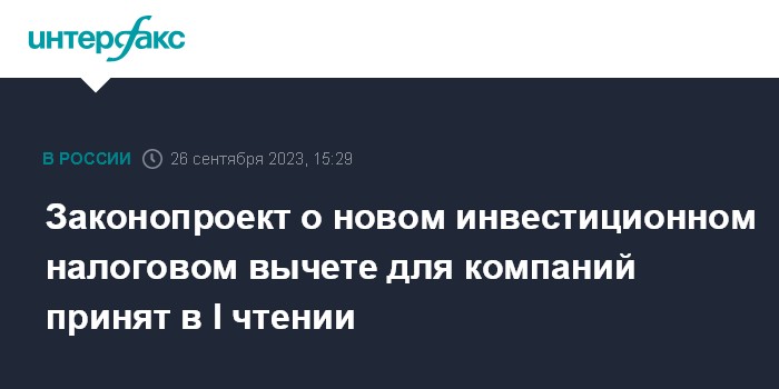 Законопроект о новом инвестиционном налоговом вычете для компаний принят в I чтении