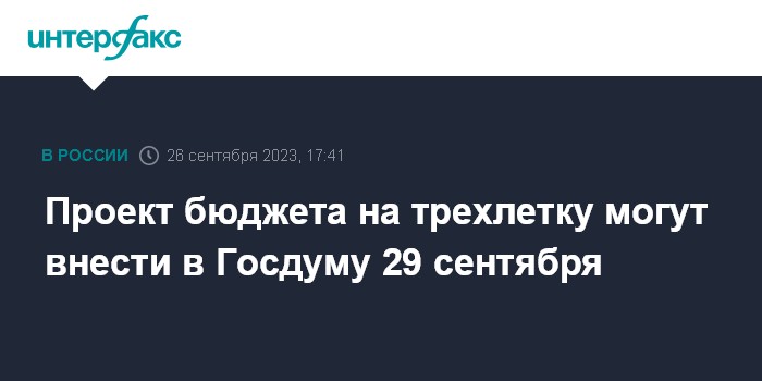 Москва. 26 сентября. INTERFAX.RU - Проект федерального бюджета на ближайшие три года планируется внести в Госдуму 29 сентября, сообщили в Совете Федерации.
