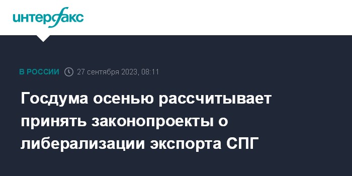 Госдума осенью рассчитывает принять законопроекты о либерализации экспорта СПГ