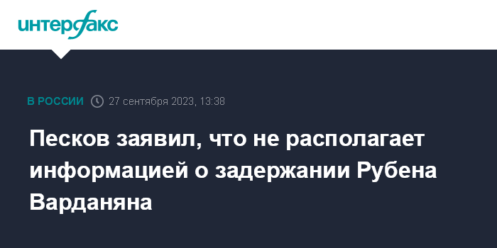 Песков заявил, что не располагает информацией о задержании Рубена Варданяна