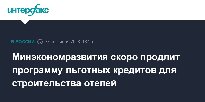 Москва. 27 сентября. INTERFAX.RU - Продление программы льготного кредитования на строительство крупных гостиниц ожидается в ближайшее время, до конца года планируется провести один отбор объектов размещения, сообщил в Госдуме замглавы Минэкономразвития Дмитрий Вахруков.