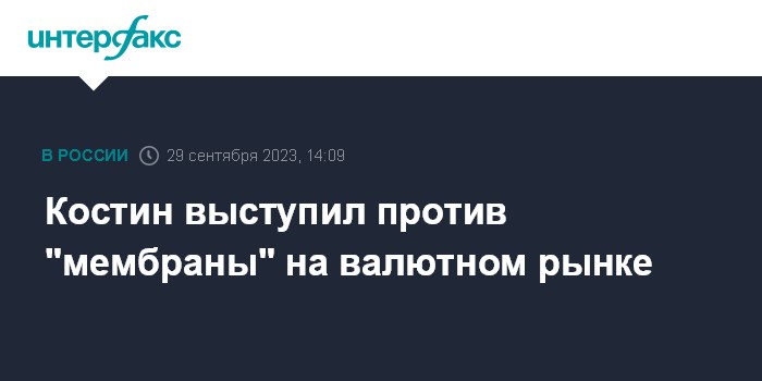 Москва. 29 сентября. INTERFAX.RU - Глава ВТБ Андрей Костин выступил против введения механизма "мембраны" на валютном рынке, это может привести к появлению двух курсов - по 150 и 250 рублей за доллар.
