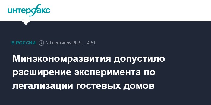 Минэкономразвития допустило расширение эксперимента по легализации гостевых домов