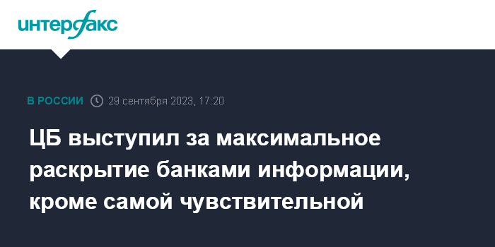 Москва. 29 сентября. INTERFAX.RU - Банк России выступает за раскрытие банками информации по максимуму за исключением наиболее чувствительных элементов, заявил на форуме в Сочи директор департамента банковского регулирования и аналитики Банка России Александр Данилов.