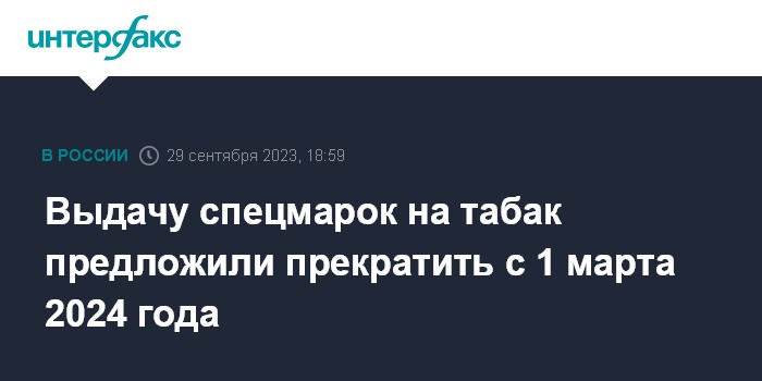 Москва. 29 сентября. INTERFAX.RU - Выдача налоговыми органами специальных марок для маркировки табачной продукции может быть прекращена с 1 марта 2024 года, говорится в проекте постановления правительства на сайте regulation.gov.ru.