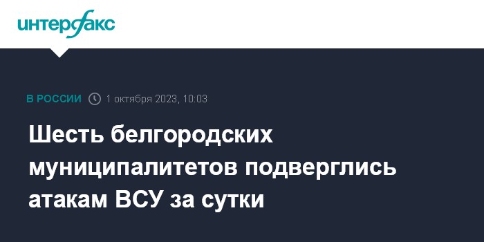 Москва. 1 октября. INTERFAX.RU - Губернатор Белгородской области Вячеслав Гладков сообщил об ударах, нанесенных по территории региона со стороны Украины за минувшие сутки.