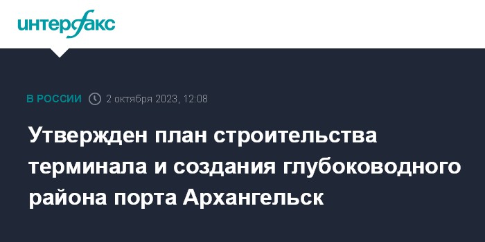 "Одним из основных мероприятий плана является строительство нового терминала в морском порту Архангельск. Для него в Двинском заливе Белого моря будет создан глубоководный морской район. Планируется, что ориентировочная мощность нового терминала к 2040 году составит 25 млн тонн в год", - говорится в документе.
