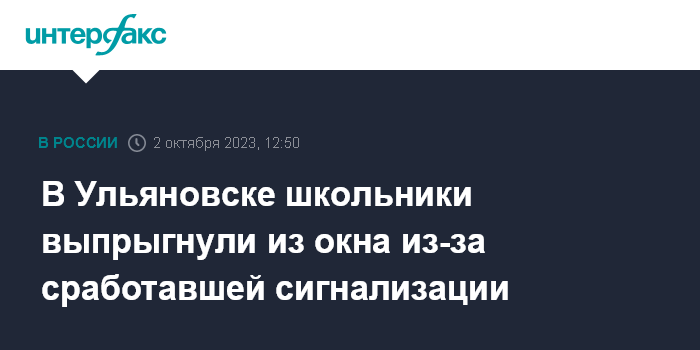 Москва. 2 октября. INTERFAX.RU - В Ульяновске в школе № 64 (Заволжский район) нештатно сработала сигнализация, несколько детей выпрыгнули из окна второго этажа, троим потребовалась медицинская помощь, сообщили "Интерфаксу" в региональном министерстве просвещения.