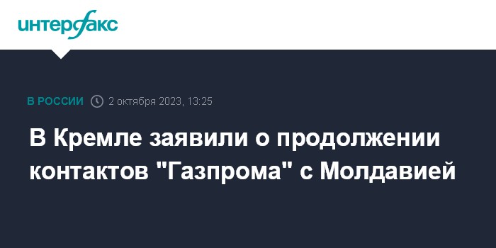 Москва. 2 октября. INTERFAX.RU - Контакты между "Газпромом" и Молдавией продолжаются, в том числе относительно долгов молдавской стороны, заявил пресс-секретарь президента РФ Дмитрий Песков.