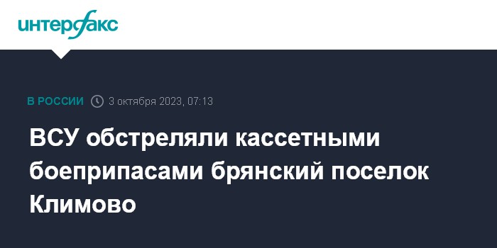 ВСУ обстреляли кассетными боеприпасами брянский поселок Климово