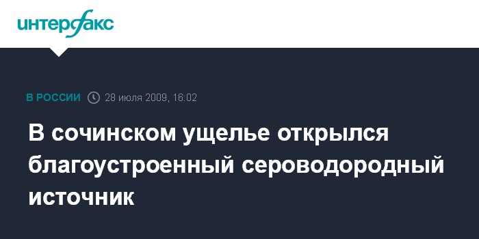 Москва. 28 июля. INTERFAX.RU - В Сочи открыли новый экскурсионный объект - природный сероводородный источник. Как сообщили агентству "Интерфакс-Юг" в пресс-службе администрации Сочи, уникальный сероводородный источник для общего пользования открыт после реставрации. По словам собеседника, скважина сероводородного источника была пробурена в 1938 году в низовьях реки Агура. В годы перестройки его закрыли, а потом и вовсе забыли о существовании подарка природы. Теперь вокруг источника, расположенного в ущелье, убрали мусор, сделали тропинки и провели освещение.