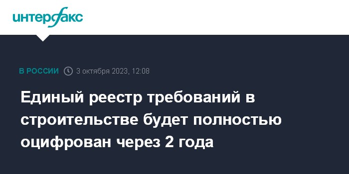 Москва. 3 октября. INTERFAX.RU - Минстрой с 2024 года начнет вести единый реестр требований в области строительства в цифровом формате, полный переход на "цифру" займет около двух лет, сообщил директор ФАУ "Федеральный центр нормирования и стандартизации" (подведомственная организация Минстроя) Андрей Копытин.