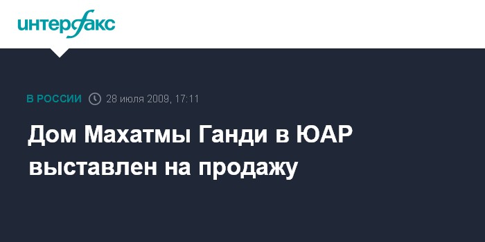 Москва. 28 июля. INTERFAX.RU - Дом, в котором известный индийский политический деятель и философ Махатма Ганди жил в Южной Африке в начале прошлого века, выставлен на продажу. Владелица дома, американская художница Нэнси Болл, сообщила, что ей не удалось найти организацию, которая взяла бы на себя сохранение дома в качестве музея, и поэтому решила выставить его на открытые торги, сообщает во вторник BBC.